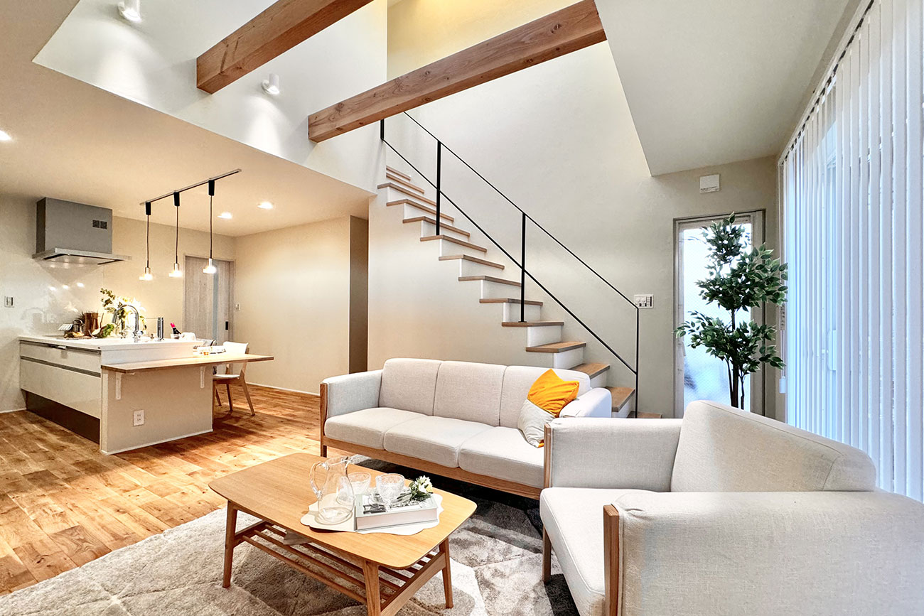 スケルトン階段が際立つホテルライクな家